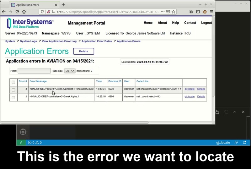 gj :: locate is the latest tool from George James Software – it debugs any error, class or routine by converting the location of an error in compiled .int code to the corresponding location in your source, and then taking you right there.