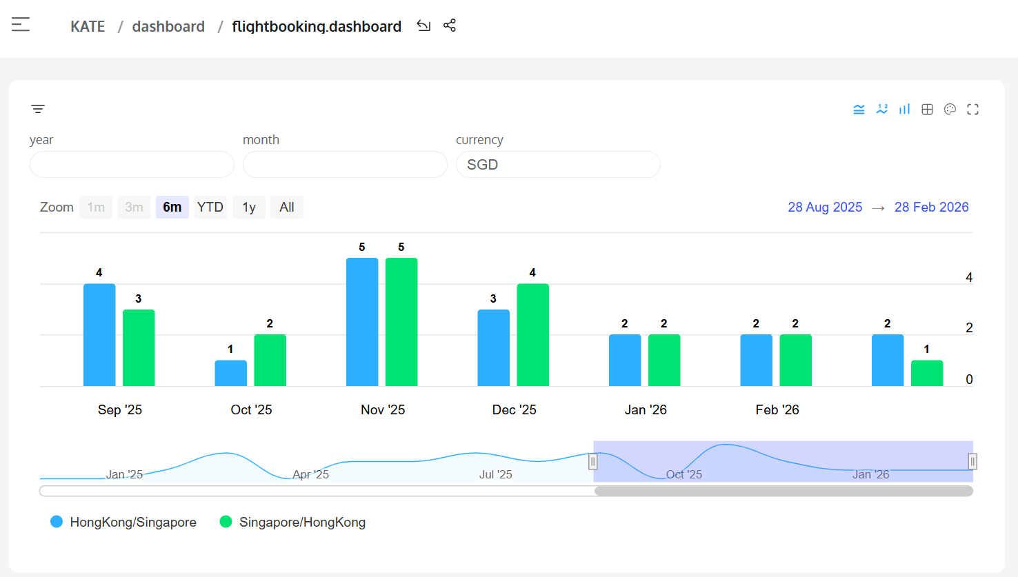 Initially, I have a dashboard on monitoring how much I spend on the sky (by time chart) and look like the following originally