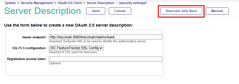 Após o Discover and Save, você verá algo semelhante ao abaixo. Podemos precisar dar uma olhada no token endpoint, que precisaremos para solicitar um token