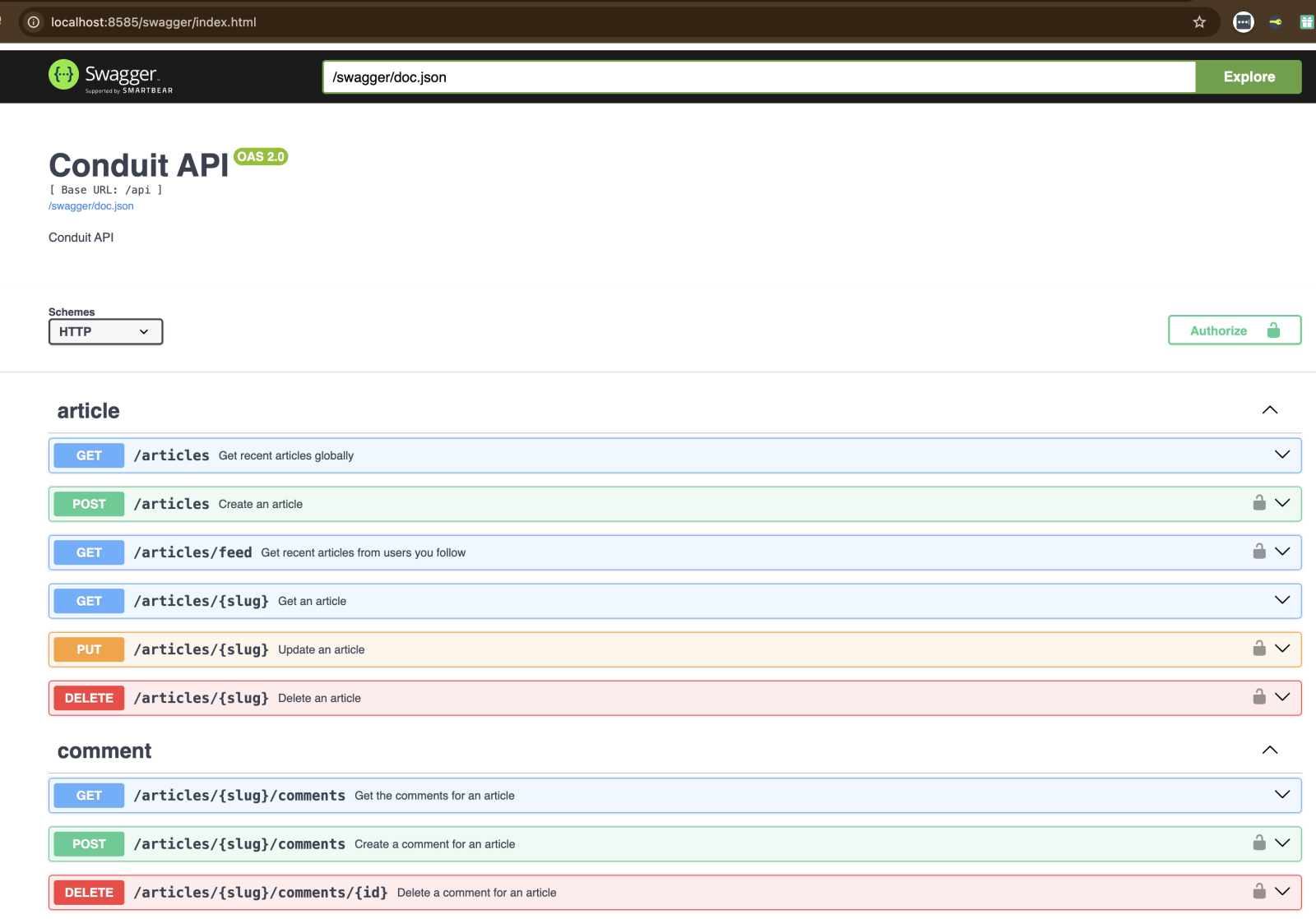 You’ll see the full RealWorld API specification — all endpoints powered by your Go Fiber backend, connected through GORM to InterSystems IRIS.
