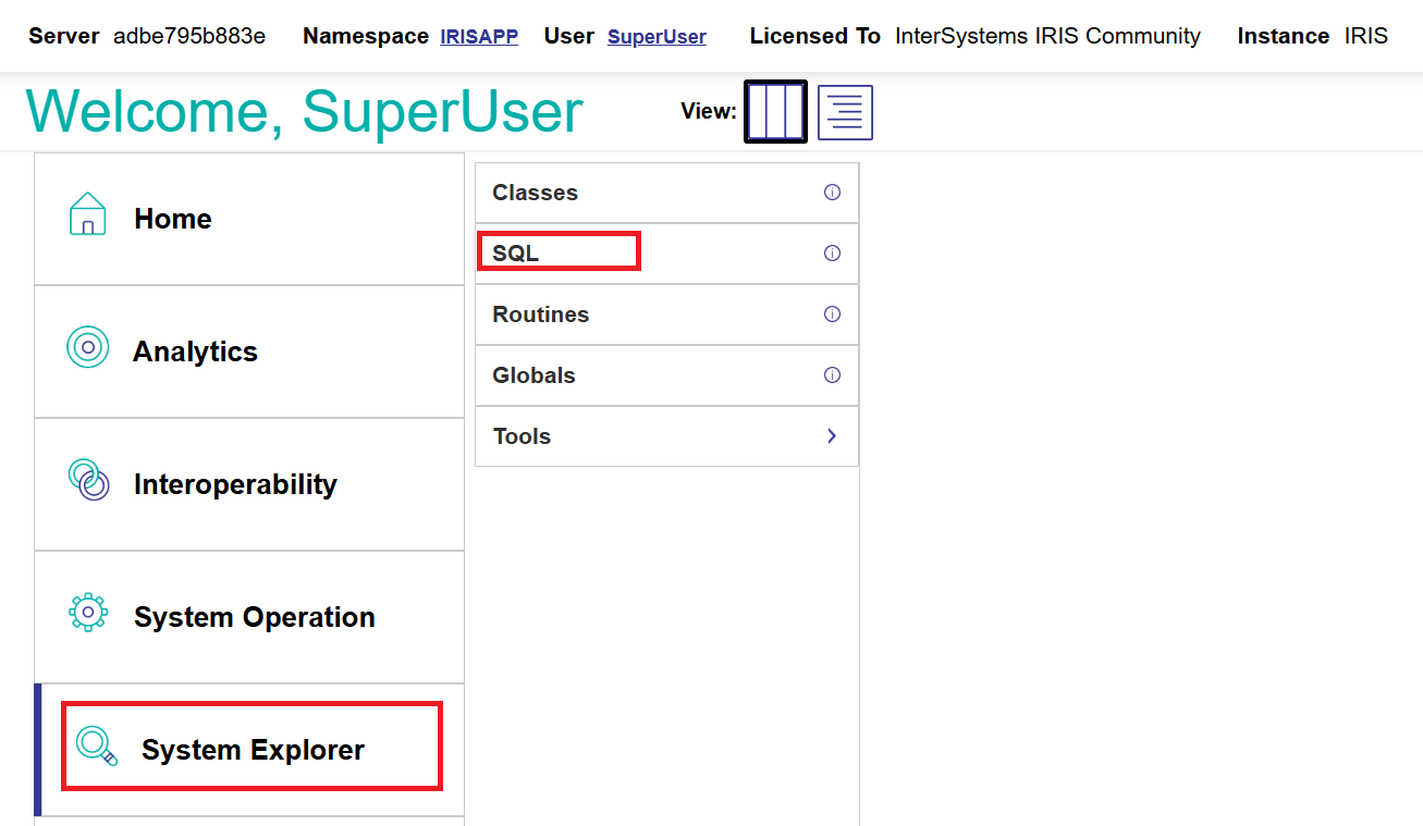 After starting the environment, login to the management portal http://localhost:52773/csp/sys/UtilHome.csp  with the user Superuser.