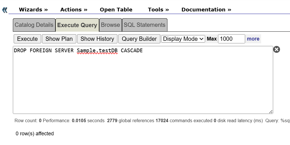 DROP FOREIGN SERVER Sample.testDB CASCADE