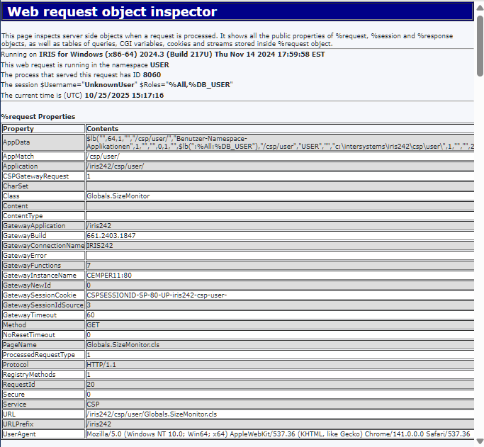 Can I return anything to the browser's console? Or into any IRIS expected place, which is relatively easy to check?