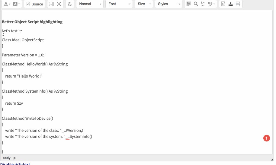 - Better highlighting for ObjectScript.