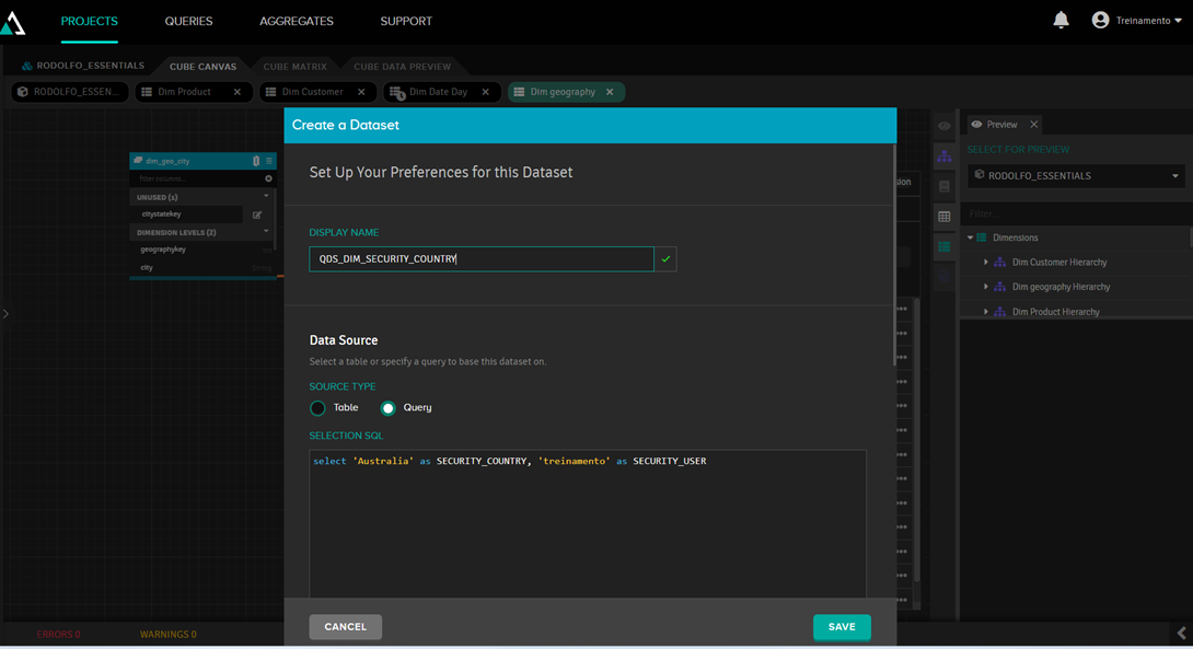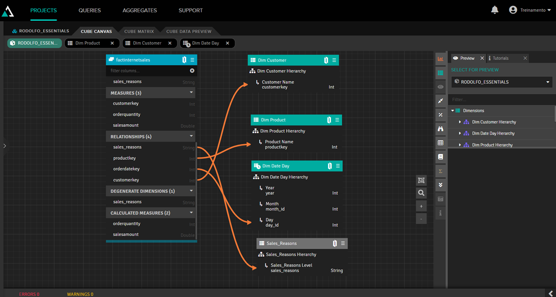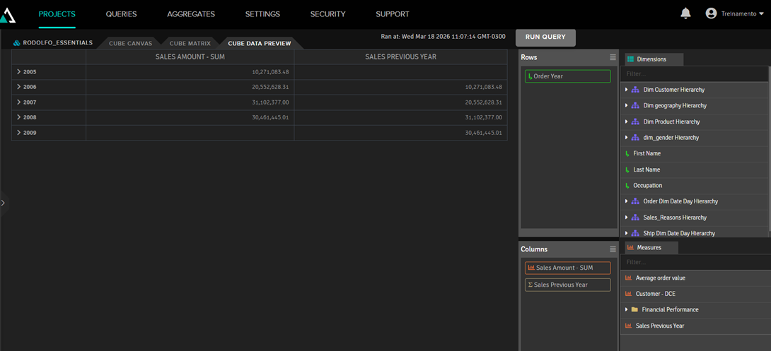 By clicking on the Cube Data Preview tab, we can see how the data will look: