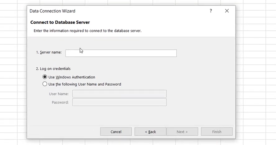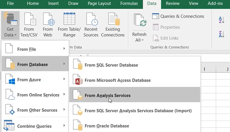 With this string in hand, select the "From analysis server" option in Excel to retrieve the data from AtScale: