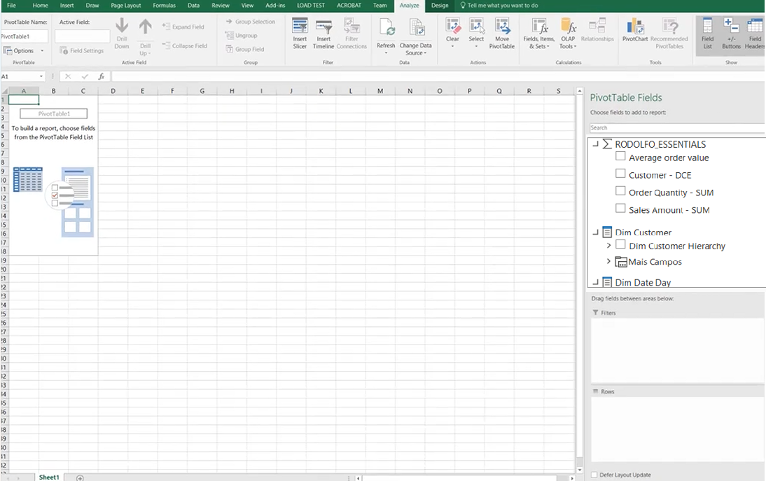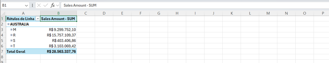From now on, when running the table in Excel with the user 'treinamento', we will only see the data for Australia: