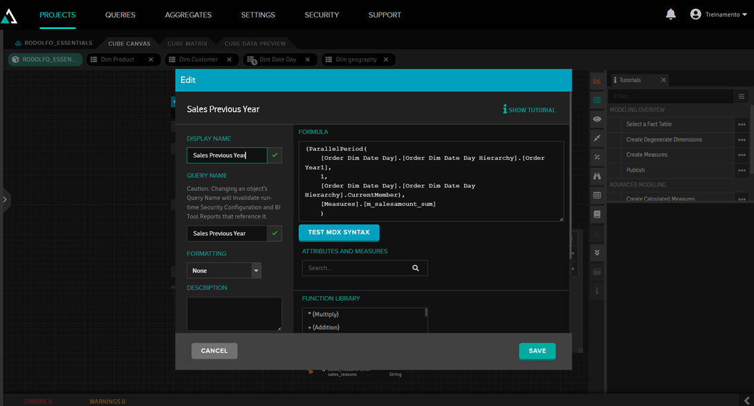 Parallel Period is a very useful function for comparing data from different periods (a very common situation is needing to compare current year sales with the previous year's sales). In AtScale, this is done by adding a calculated measure and using the ParallelPeriod function, like this: