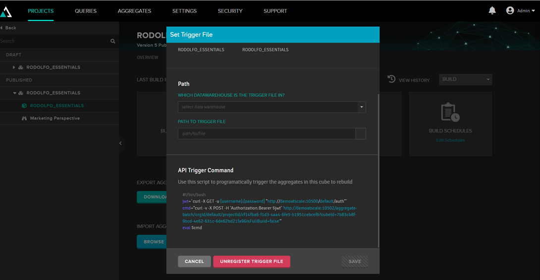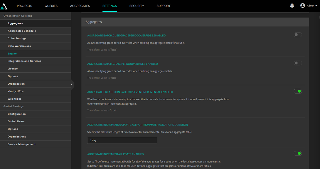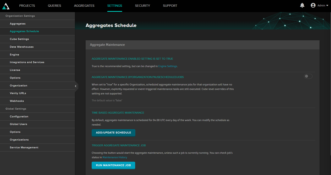 These aggregation tables are stored in IRIS. In the AtScale settings, it's possible to define which package they will be stored in (in the example above, ATSCALEAGG) and even whether we want to store them in a namespace or a separate IRIS instance.