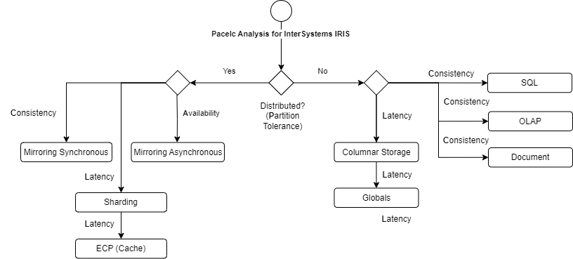 The following diagram illustrates how the components of the InterSystems IRIS architecture can fully meet any of the PACELC characteristics: