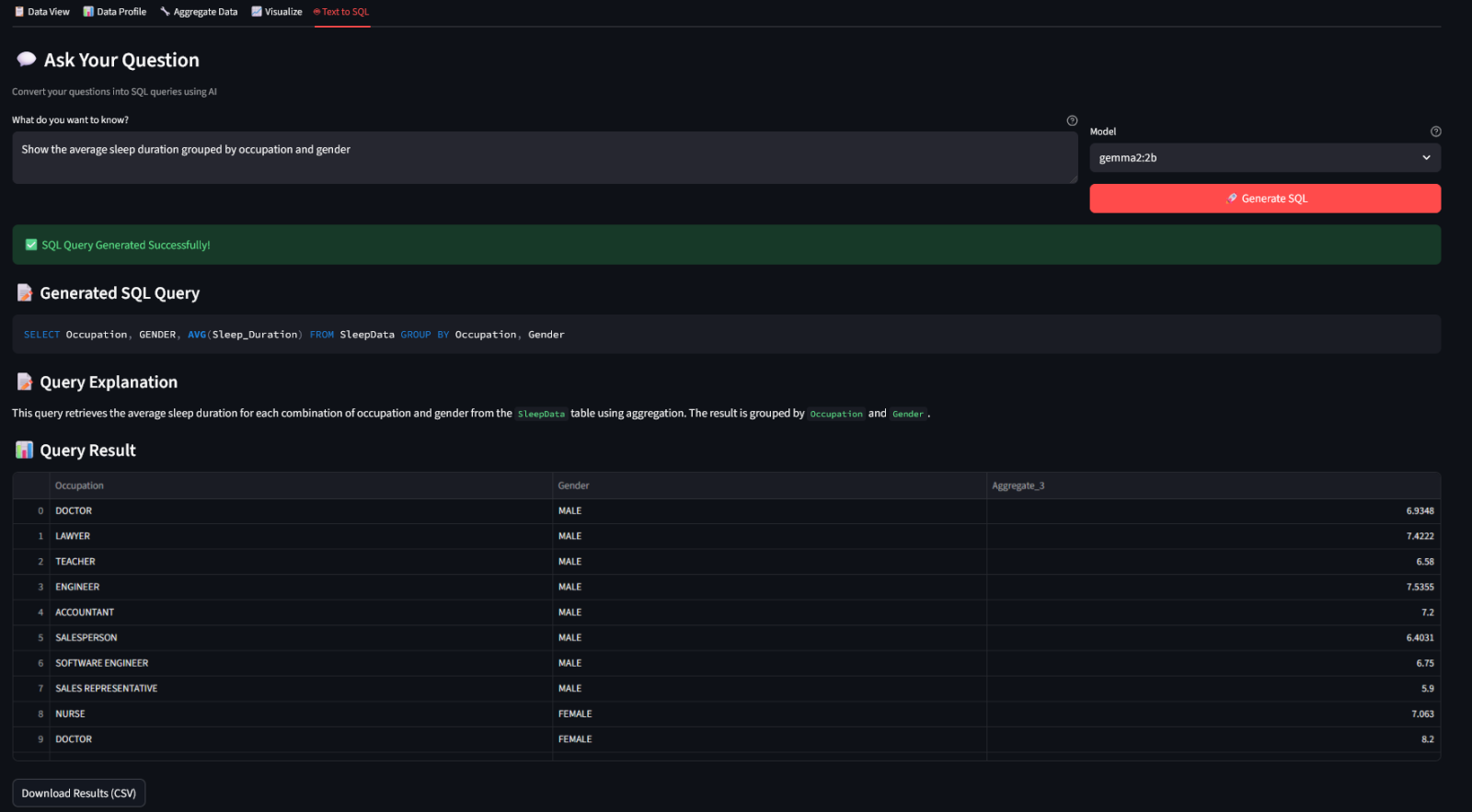• In the Text to SQL tab, you can query your data just by asking questions in plain English.