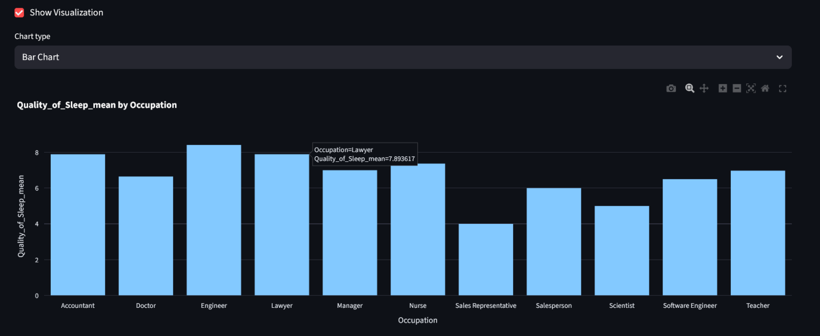 • “What is the occupation with the best sleep quality?"