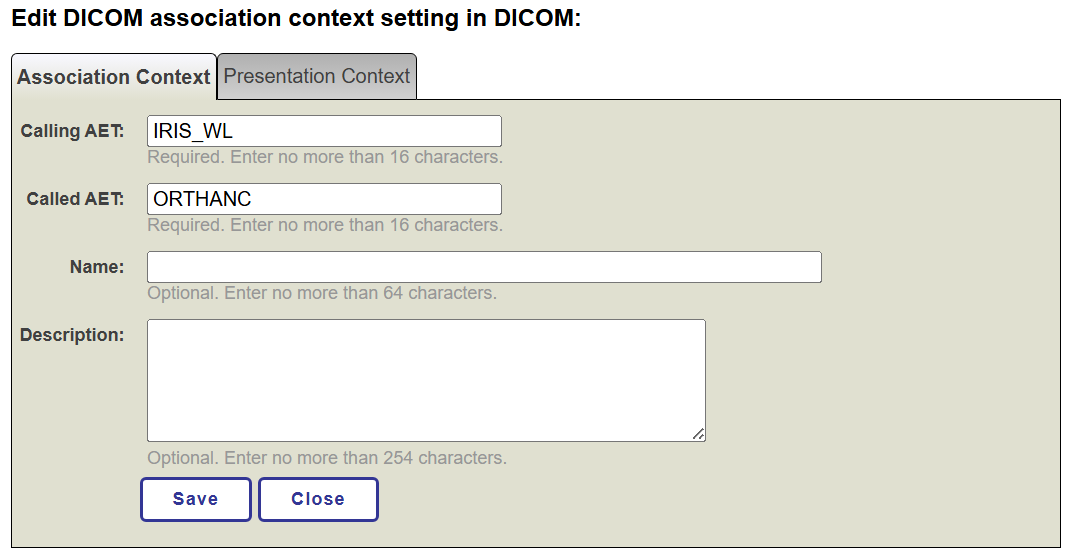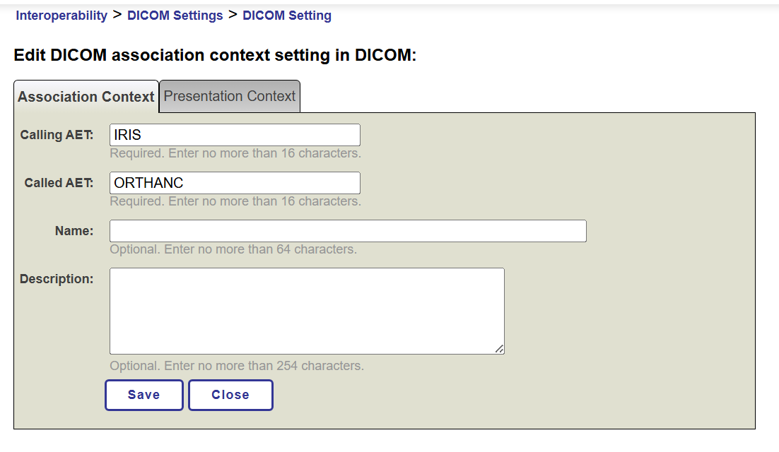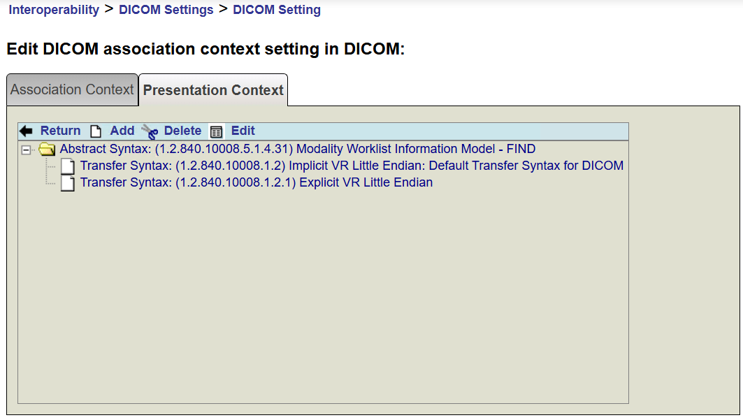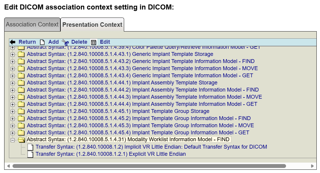 And furthermore, in the Presentation Context option we have defined said Abstract Syntax: