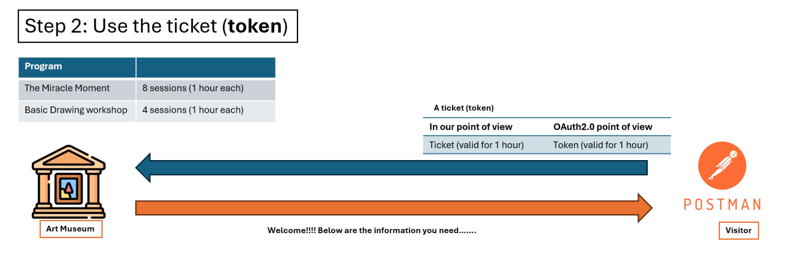 Step2: present the token to the Resource Server (Present the ticket to the Art Museum)