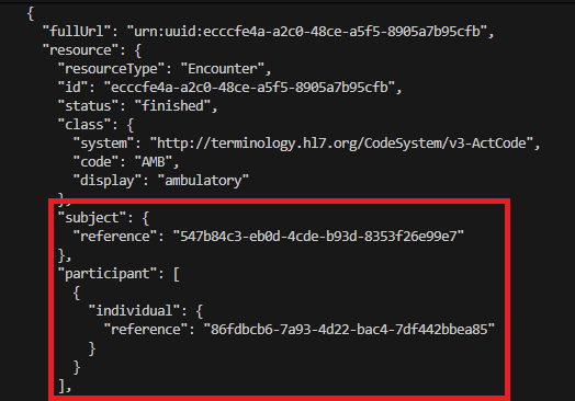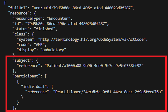 While IRIS FHIR repository by referencing a patient resource using uuid looks like the following