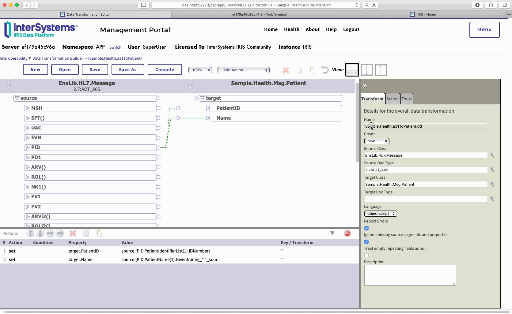 Learn how to create data transformations using the graphical interface in the Management Portal. You'll also see how to map fields, use functions to modify the fields and use literals as values for the fields. Finally, you will learn how to test an