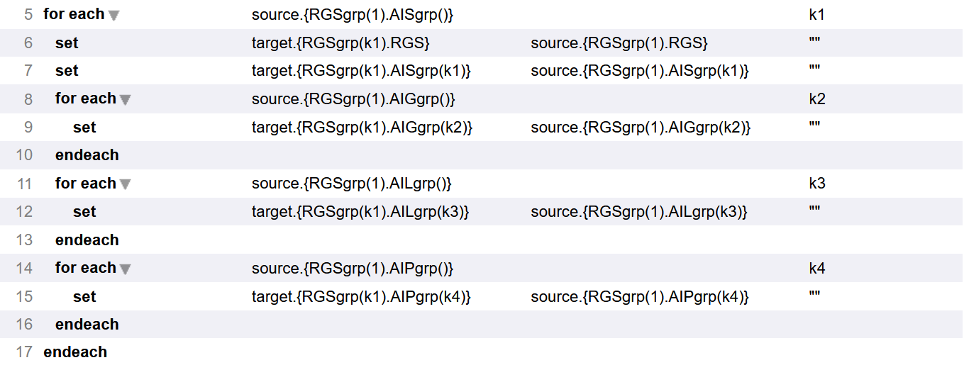 go to post Jeffrey Drumm · 7 hr ago A foreach (possibly multiple foreaches) is what you need. Getting the iterators right is the issue. You're iterating over the AISgrp in the first RGSgrp of the source message and placing them in target RGSGroups with the same iteration count of the source AISgrp. Here's an example based on the 2.3.1:SIU_S12 schema structure that should do what you want, and also handles repetitions of the AIL, AIP and AIG groups: