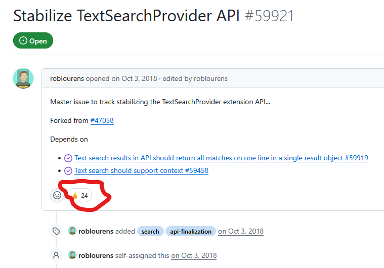 Anyone wanting to lobby for finalization of the VS Code API that will allow everyone to benefit from server-side search integrated into VS Code's native Search view without having to install a beta VSIX downloaded from our GitHub repo, please visit this 8-year-old VS Code issue and add your vote to the 👍on the initial post, i.e. here:
